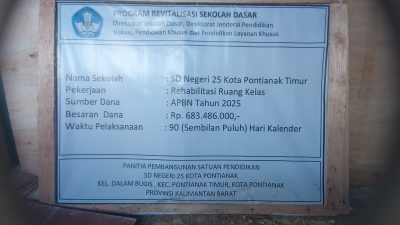 Pontianak,Kalbar-faamnews.com – 24 November 2025 – Proyek rehabilitasi ruang kelas di SD N 25 Pontianak Timur, Kota Pontianak, Kalimantan Barat, menjadi sorotan publik setelah terungkap…