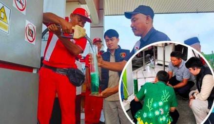 Tidak hanya mengecek besaran BBM yang dikeluarkan dalam penjualannya, tim melakukan cek tandon pendam SPBU dengan menggunakan bahan khusus untuk mendeteksi adanya air.