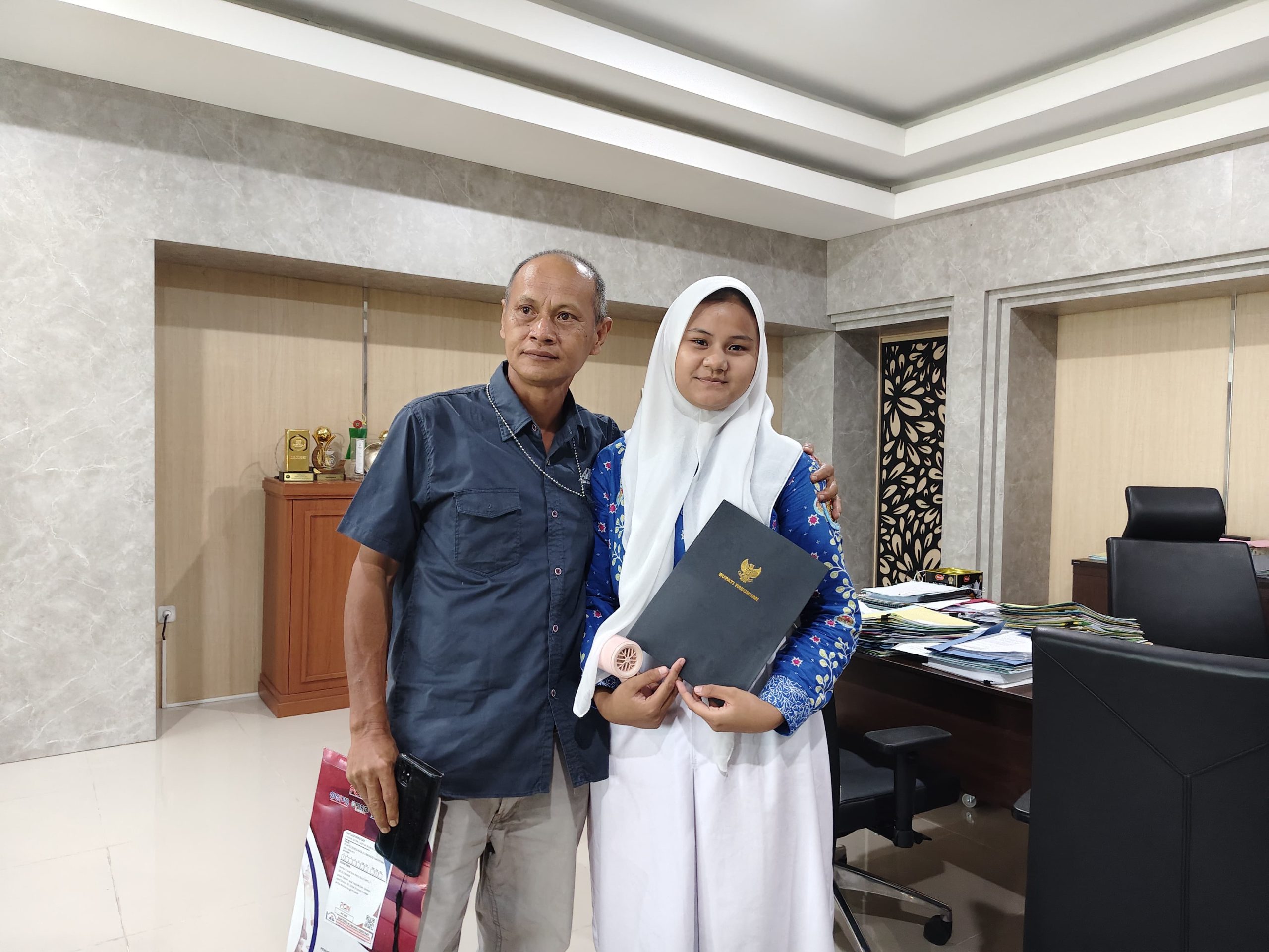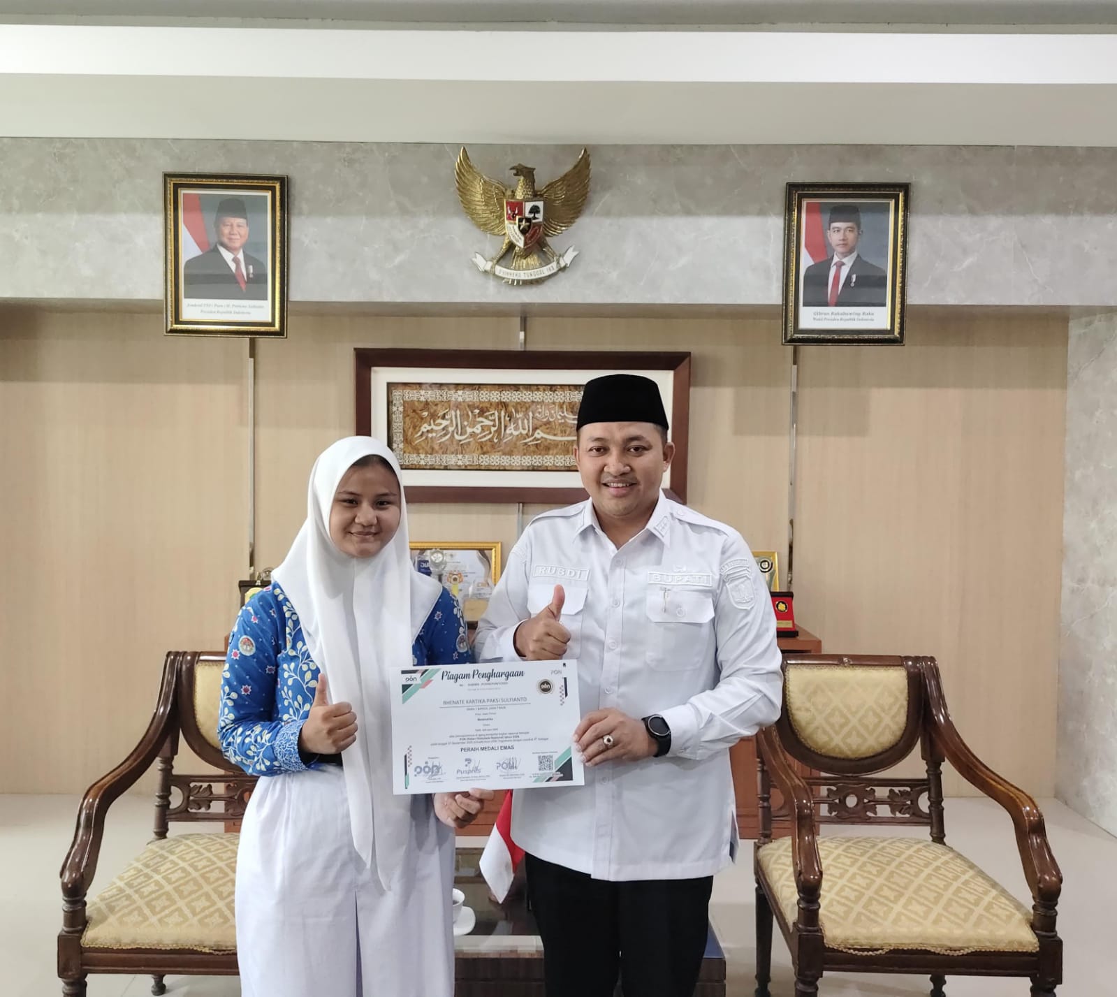 Pelajar siswi yang bernama Rhenate Kartika tersebut diketahui berhasil meraih gelar bergengsi dengan torehan emasnya setelah menyisihkan para pesaingnya dari berbagai wilayah di Indonesia.