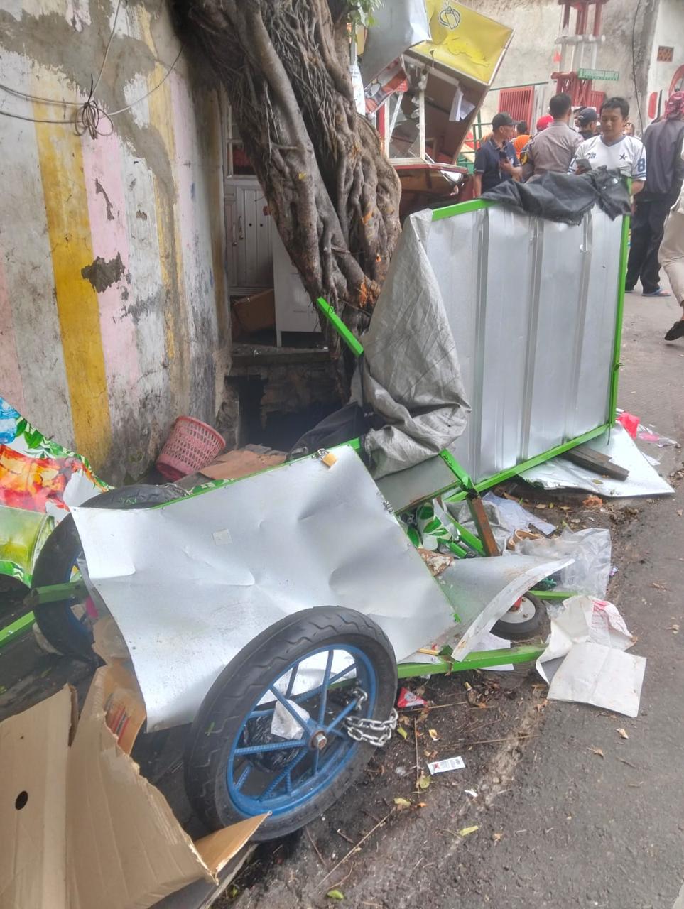 Selain korban luka, kecelakaan juga mengakibatkan kerusakan pada tiga lapak pedagang kaki lima serta satu unit sepeda motor.