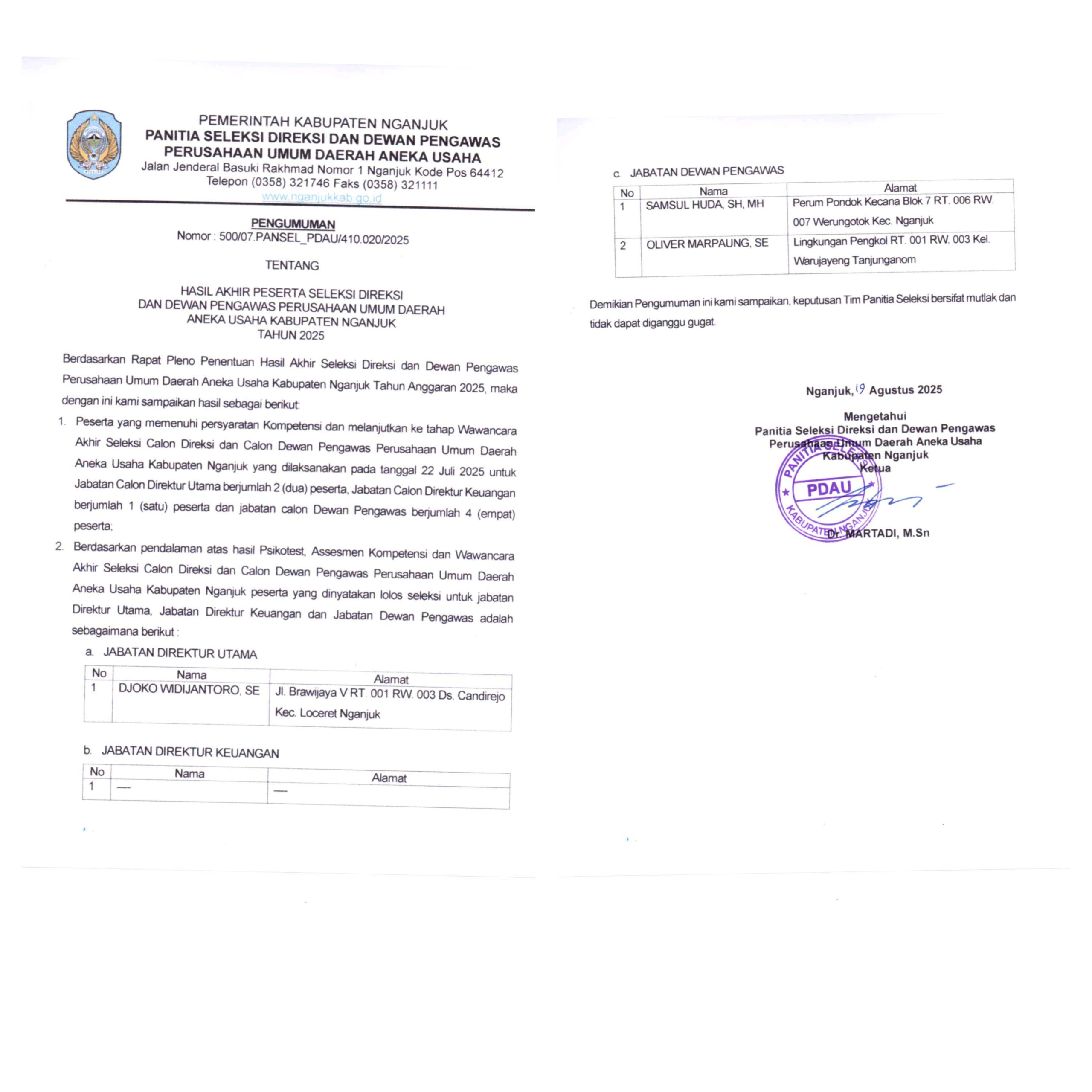 Lebih lanjut, FAAM Nganjuk mendorong adanya evaluasi menyeluruh dari Bupati Nganjuk selaku pemegang otoritas terhadap BUMD. Menurutnya, pengisian jabatan direktur keuangan bukan sekadar formalitas, melainkan kebutuhan mendesak agar sistem pengelolaan keuangan PDAU berjalan sesuai prinsip good corporate governance.