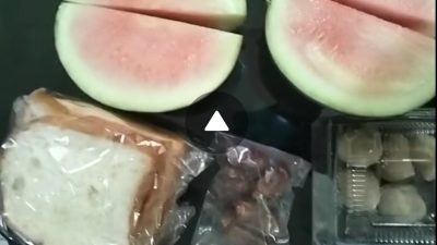 Dalam menu tersebut terdapat semangka yang masih mentah, pentol, kurma dan roti.