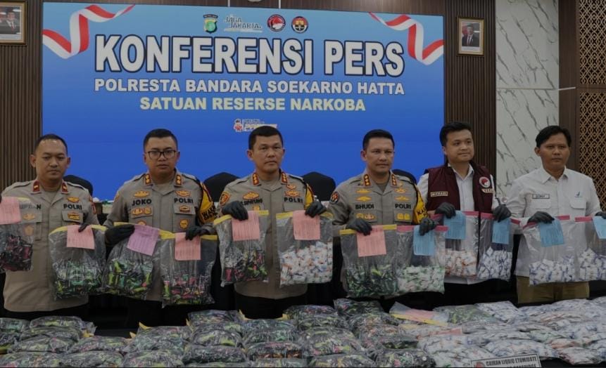 JAKARTA -faamnews.com – Satuan Reserse Narkoba Polresta Bandara Soekarno-Hatta (Soetta) berhasil mengungkap kasus peredaran cartridge vape berisi obat keras berbahaya (Okerbaya) jenis etomidate, dengan nilai ekonomi mencapai Rp 42,5 miliar.