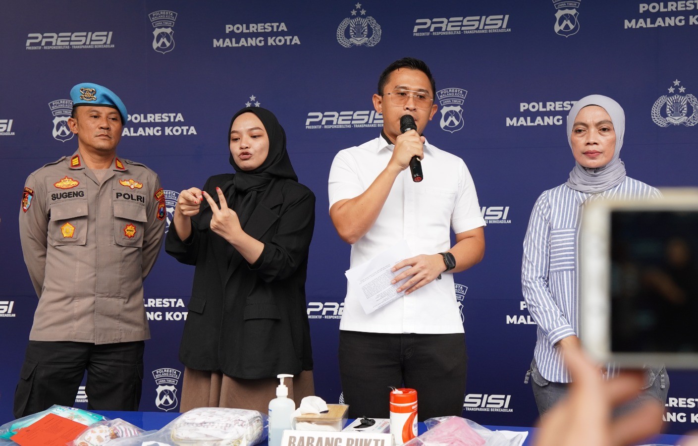 Dalam konferensi pers, Kasatreskrim Polresta Malang Kota AKP Rahmad Aji Prabowo didampingi Kanit PPA Iptu Khusnul dan Kasi Humas Ipda Lukman Sobikhin memaparkan hasil pengungkapan kasus pembuangan bayi yang ditemukan di pinggir Jalan Jaksa Agung Suprapto, Kelurahan Klojen, Kota Malang.